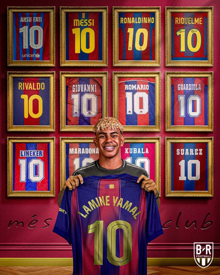 雅馬爾接管了巴塞羅那的第10號:梅西 羅納爾多 里瓦爾多 馬拉多納.