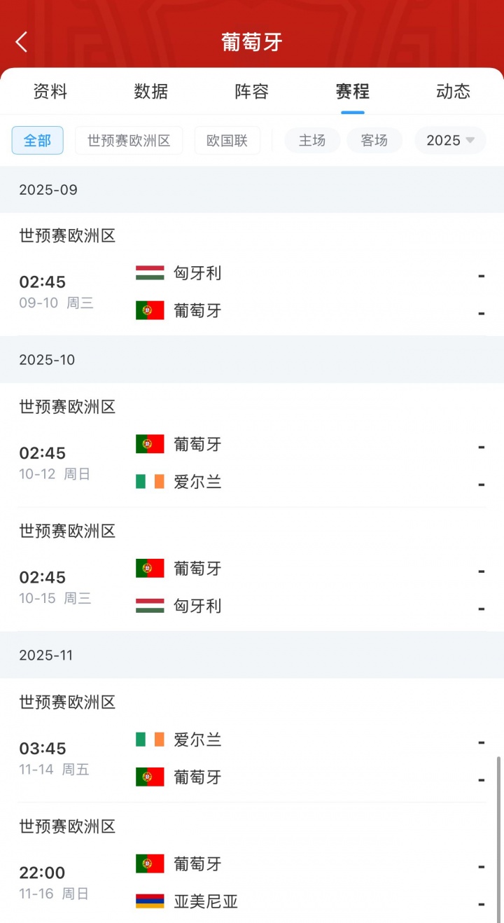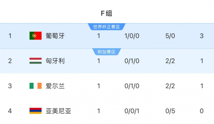 在歐洲預選賽中,F(xiàn)組還剩5場比賽,同一組的葡萄牙對手包括匈牙利,愛爾蘭和亞美尼亞。